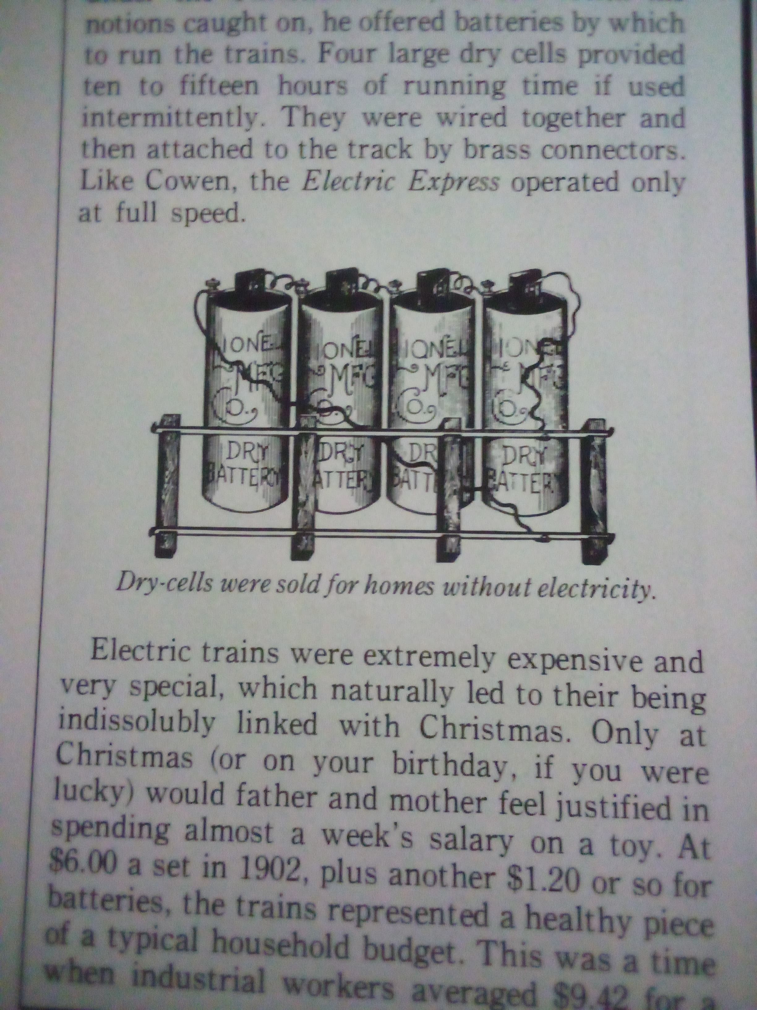 I wonder how many batteries would be necessary to run the big 402 behind the boy? If you look closely you can see a wire going from an overhead lamp to the early transformer.