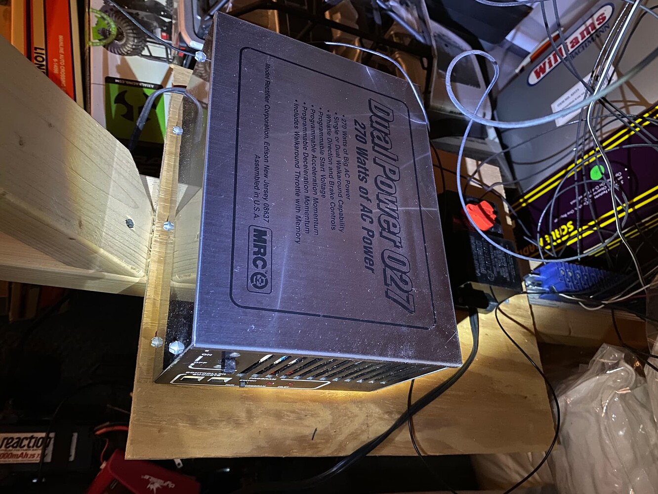 Model Rectifier Corporation Dual Power O27 270 watt power supply. When it came on the market it wasn’t recognized that it wasn’t completely compatible with the early Ni-Cad 9 volt battery electronics in ProtoSound 2 equipped MTH locomotives. Even with BCRs and MTH chip reset kits (indictive of how widespread the problem was) nothing could save the boards that had their data completely scrambled. So badly, in fact, that electronics engineers at Rockwell couldn’t make heads or tails of the data. I removed all the electronics from the 6 PS2 engines I had and sold all but one. It’s brainless but it runs.