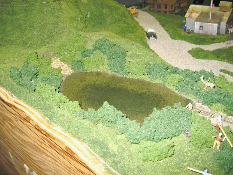 This water will come to the edge of my layout and at the point where the styrene dam (which will be removed once water sets) and layout edge meet, it will approximately be 1.5" deep.