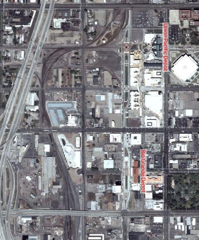I also wonder where Union Pacific depot and Rio Grande Depot is located in this map (link below)?
