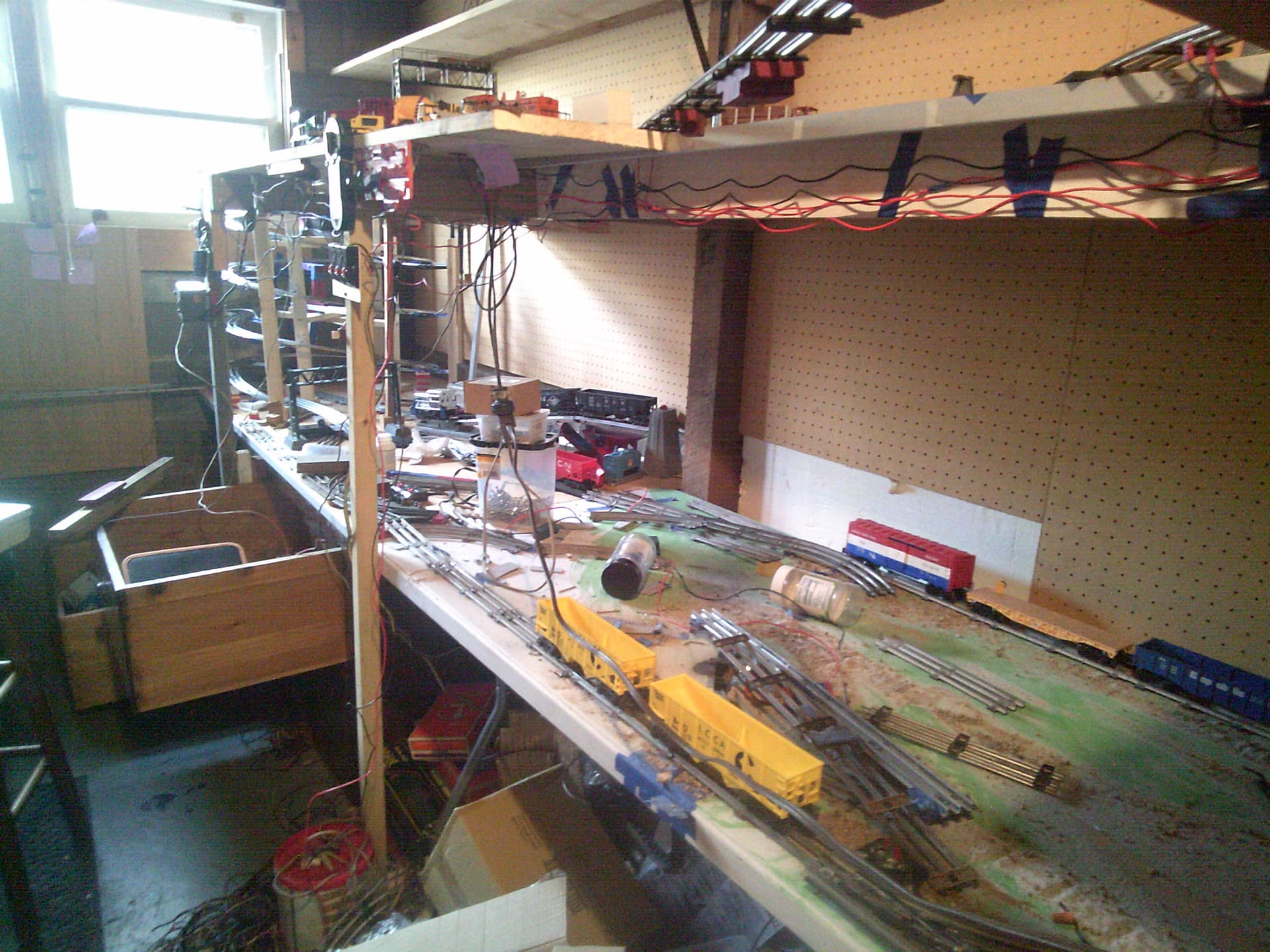 I started with an engine terminal on a 2-1/2’x6’ banquet table instead of the classic 4x8 plywood. It was quite constricting, especially since I used O, but at least I’d moved on past the basic oval setup and wanted real switching. That same table is still part of my current layout, but most of the original track (including my highly defective scratchbuilt turntable) has since been torn up and is currently being replaced with a small hump yard.