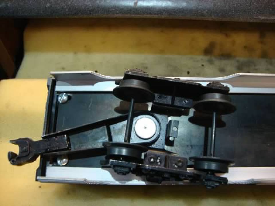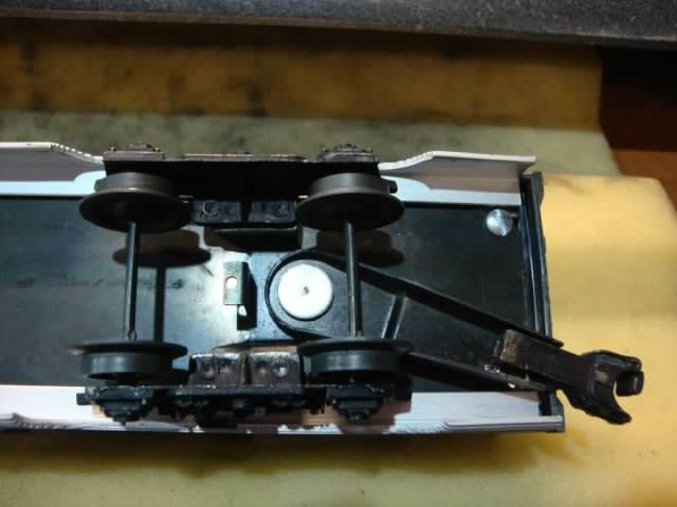 Working on a set of TCA Anniversery Madisons that I just picked up. Drag was horrible. Solid couplers on some cars had the same uncoupling problem. Carefully removed the wheels ans axles from the trucks. used a dremel with a wire wheel to remove the paint from the end of each axle. Spayed with silocone lubricant. they roll better . While the trucks are apart preen the coupler rivit to tack up the lateral play in the couple. They are still far from perfect, but better.