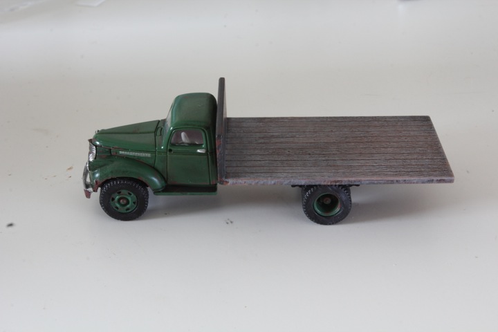 Richard, for this truck, the entire model got a wash of india ink and isopropyl alcohol, and then the bed was heavily drybrushed with Poly Scale lt gray undercoat.