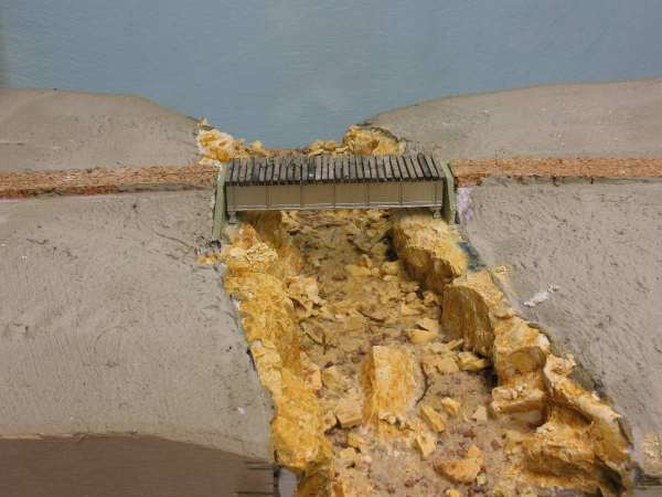 This was my first road not using sheet styrene. I started with Durhams water putty and finished it off with dry wall compound. Below are are the results after finishing the road