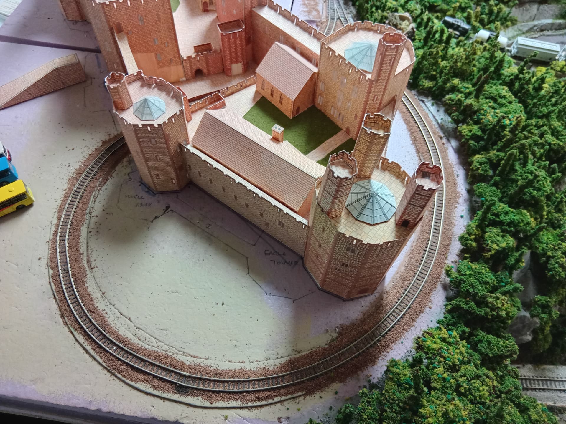 Thanks, I printed off (reasoning that copyright applied only if I was making comercial use of the images, which I am not) several pages of typical wall, hall and turret sections, and from those fashioned an additional portion of the castle to and through which my N30n track loops.